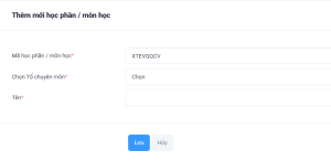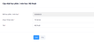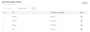 Hiển thị danh sách học phần / môn học, hiển thị bao gồm các trường thông tin như mã, tên và tổ bộ môn/ chuyên môn thuộc về