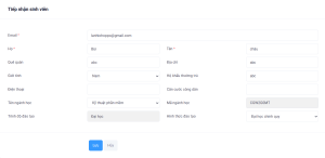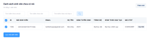 Danh sách hiển thị bao gồm các sinh viên chưa có mã số, sau khi xác nhận mã sinh viên đã đúng thì người dùng tích vào ô tích chọn, sau đó nhấn Lưu mã sinh viên.
