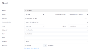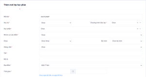 Bước 2: Điền các thông tin cơ bản về lớp học như Mã lớp, Học kỳ, Học phần, v.v.