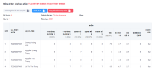 Để xem bảng điểm và tình trạng điều kiện dự thi của sinh viên trong lớp lựa chọn Bảng điểm để xem điểm của các sinh viên lớp học phần.