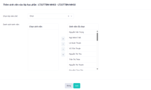 + Với đối tượng là đăng ký khóa học / Niên chế, phụ trách quản lý đào tạo hoặc giáo vụ sẽ đăng ký học phần cho cả lớp
