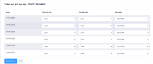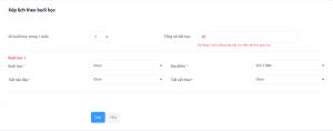 Bước 2: Lựa chọn số buổi học trong tuần, Buổi học, tiết bắt đầu / kết thúc, sau đó nhấn Lưu