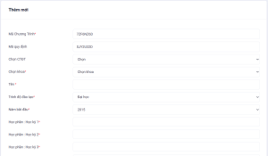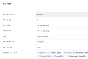 – Tính năng: Tìm kiếm / Thêm mới / Cập nhật chi tiết chương trình đào tạo