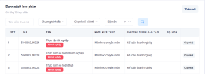 Để Cập nhật thông tin học phần, người dùng theo tác theo hướng dẫn