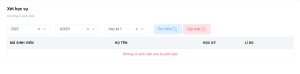Tiến độ đào tạo Xử lý học vụ Estimated reading: 1 minute 146 views Hiển thị danh sách sinh viên bị báo cáo, danh dách hiển thị theo từng học kỳ thuộc lớp niên chế.